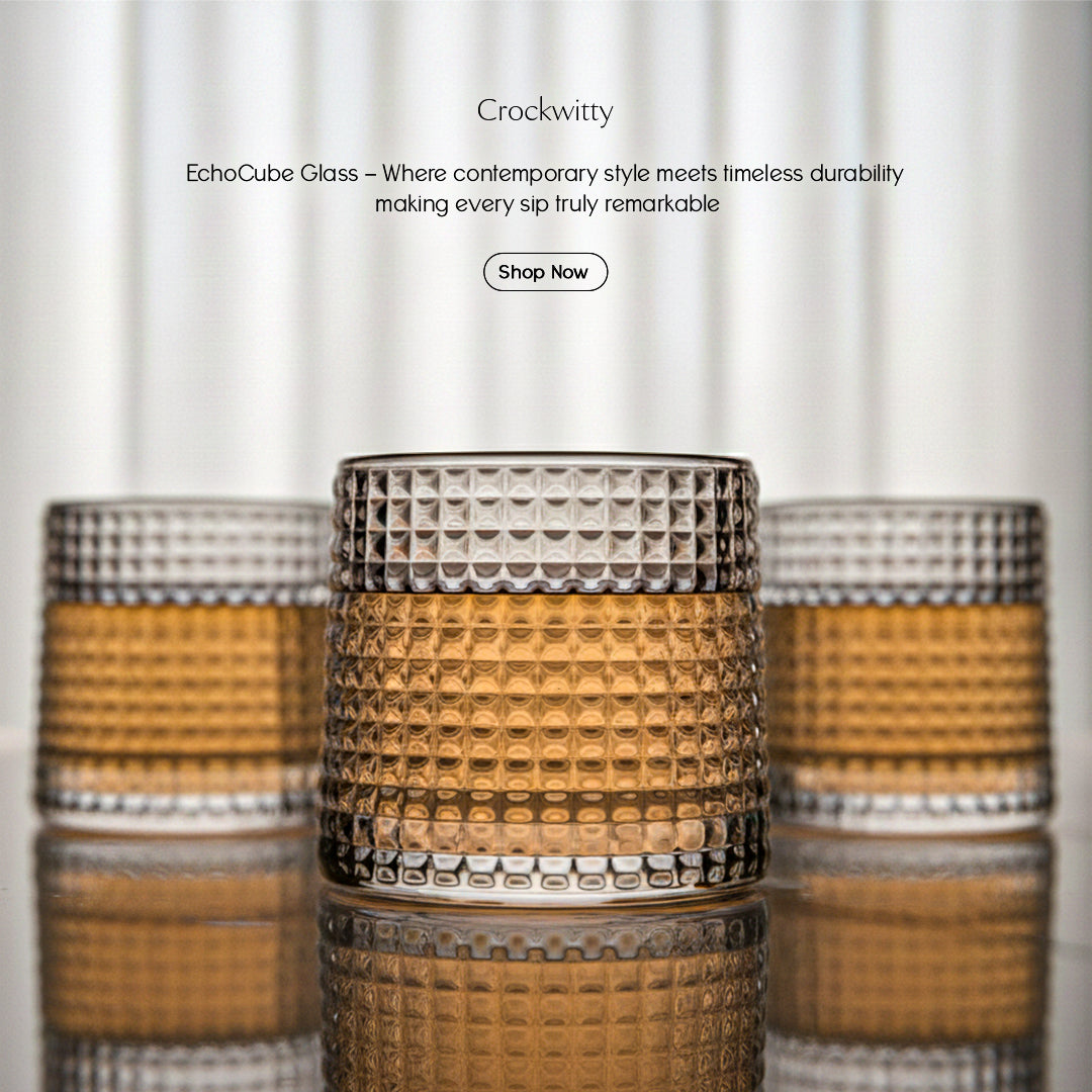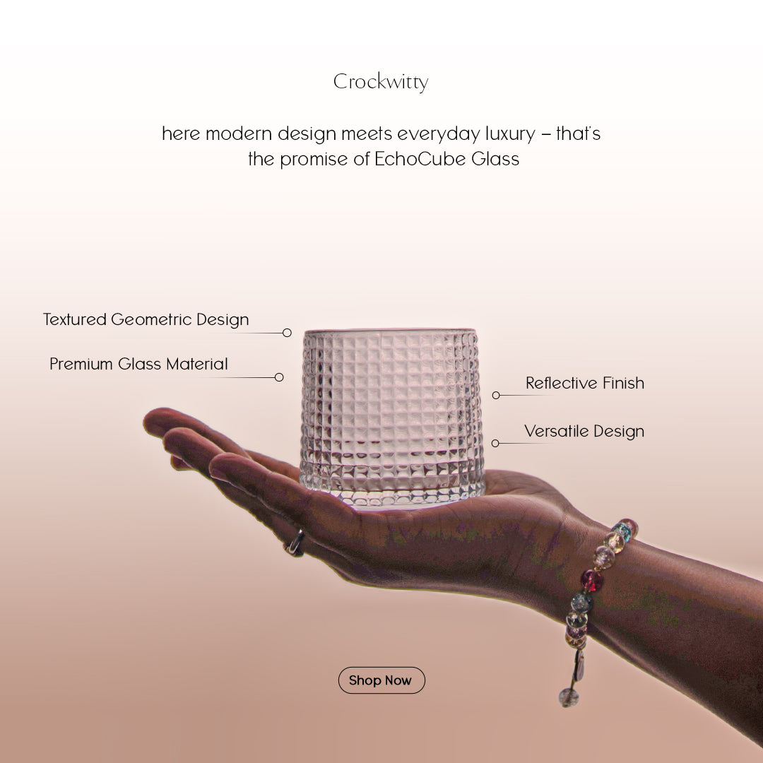 Elevate your everyday sipping experience with the EchoCube Glass by Crockwitty, where modern geometry meets understated luxury. Designed with a distinctive textured cube-pattern surface, this premium glass reflects light beautifully, adding depth, character, and sophistication to your tableware collection. Minimal yet striking, EchoCube Glass is crafted for those who appreciate refined design and functional elegance.