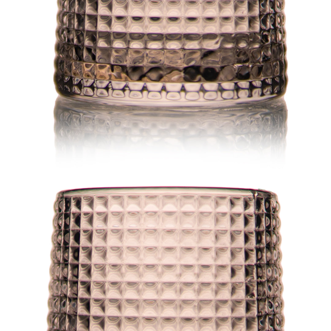 Made from high-quality premium glass, this designer tumbler offers excellent clarity, durability, and a comfortable grip. The geometric texture not only enhances visual appeal but also provides a tactile experience that feels substantial and luxurious in hand. Its reflective finish and clean cylindrical form make it a versatile addition to both contemporary and classic table settings.