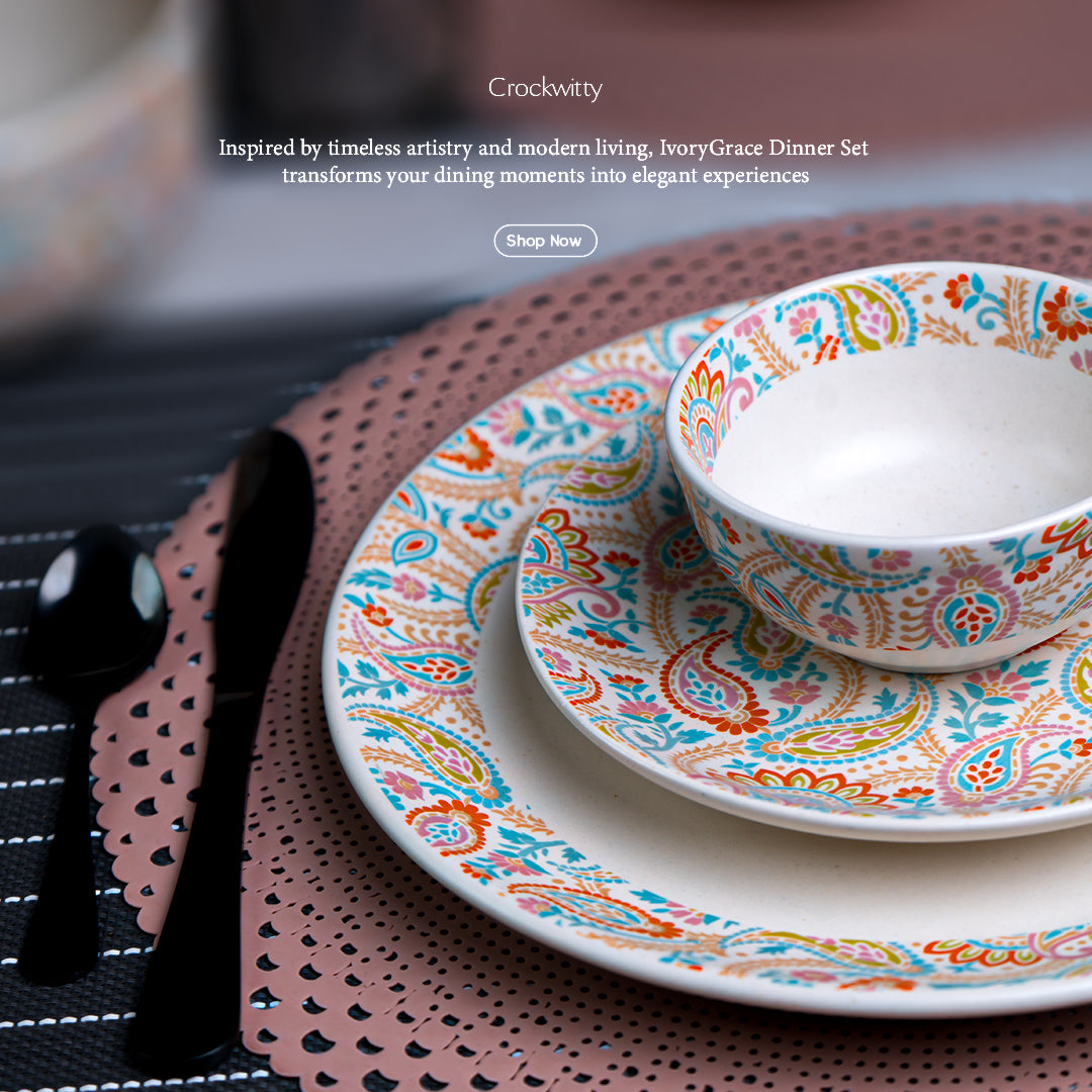 Crafted from high-quality ceramic, the IvoryGrace Dinner Set showcases an artisanal finish with a smooth glazed surface that enhances both durability and visual appeal. The elegant floral detailing adds a subtle charm, making it perfect for intimate family dinners, celebratory feasts, and stylish hosting. Thoughtfully curated to offer a complete dining experience, this set balances beauty with functionality for contemporary homes.