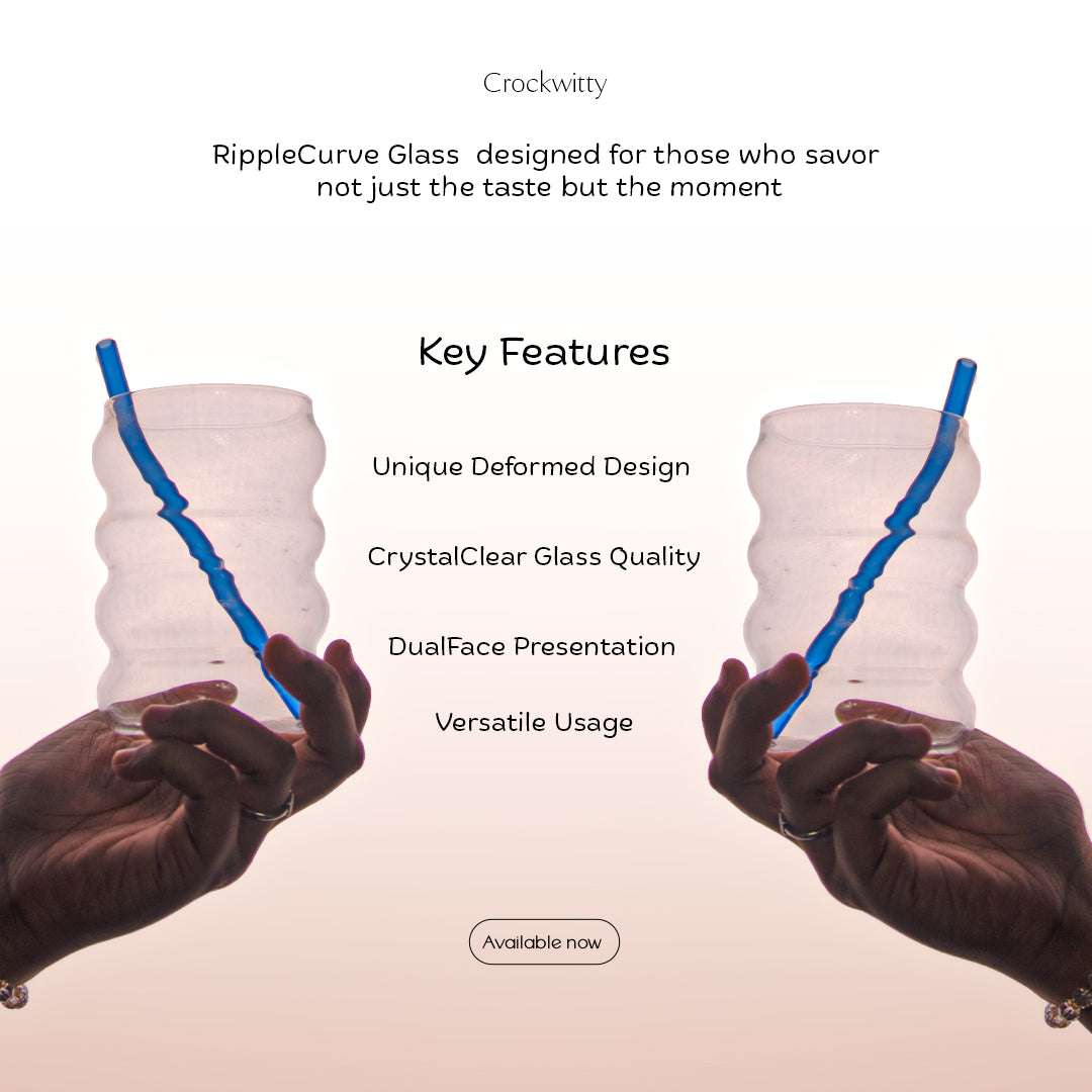 Sculptural, fluid, and effortlessly modern, the RippleCurve Glass is crafted for those who savour not just the taste, but the moment itself. Featuring a distinctive ripple-inspired curved silhouette, this glass brings a sense of movement and artistry to your everyday beverages. Its softly deformed form feels organic in hand, making every sip a tactile and visual experience.