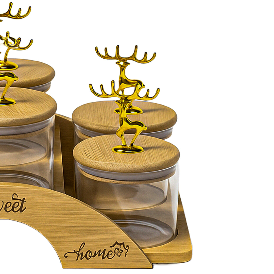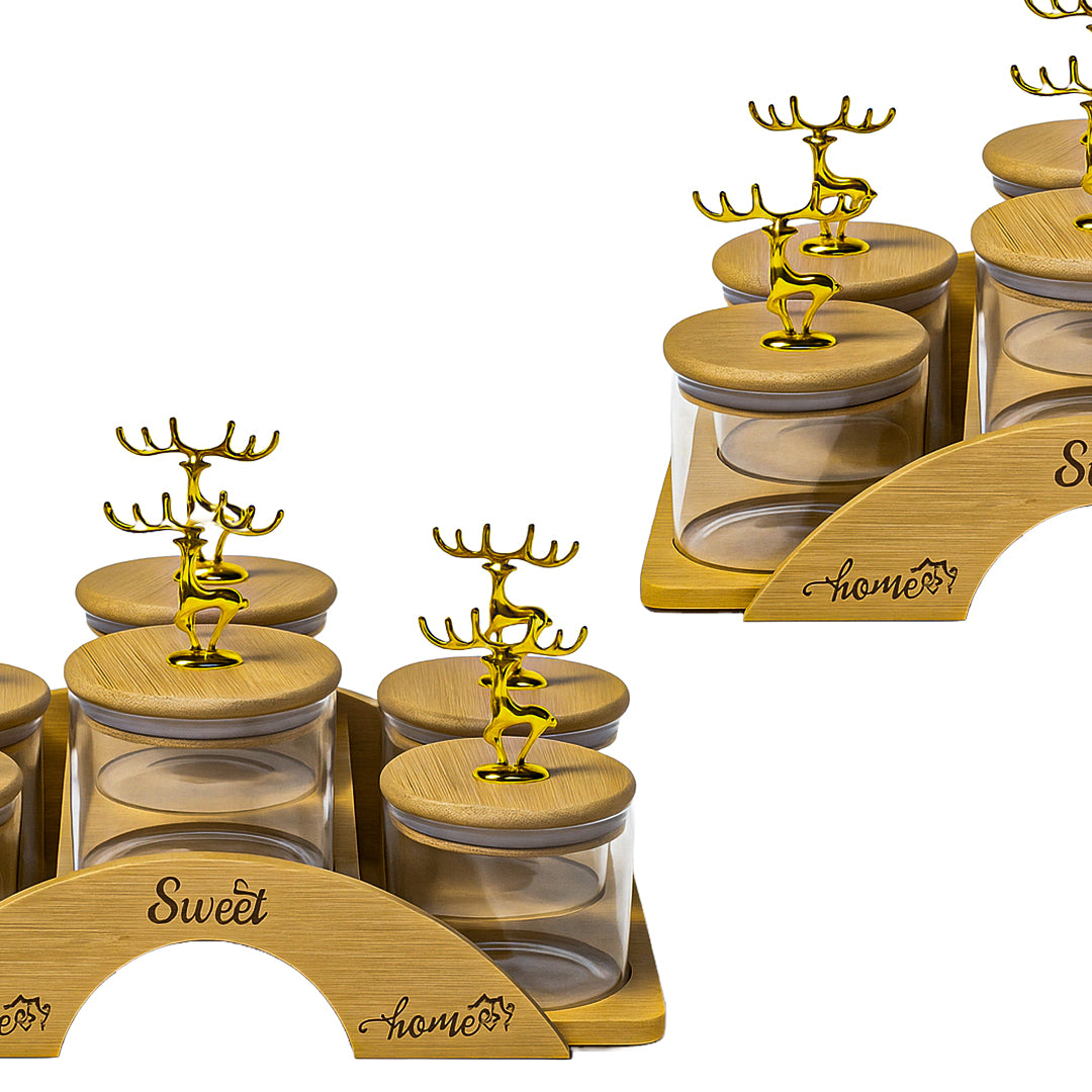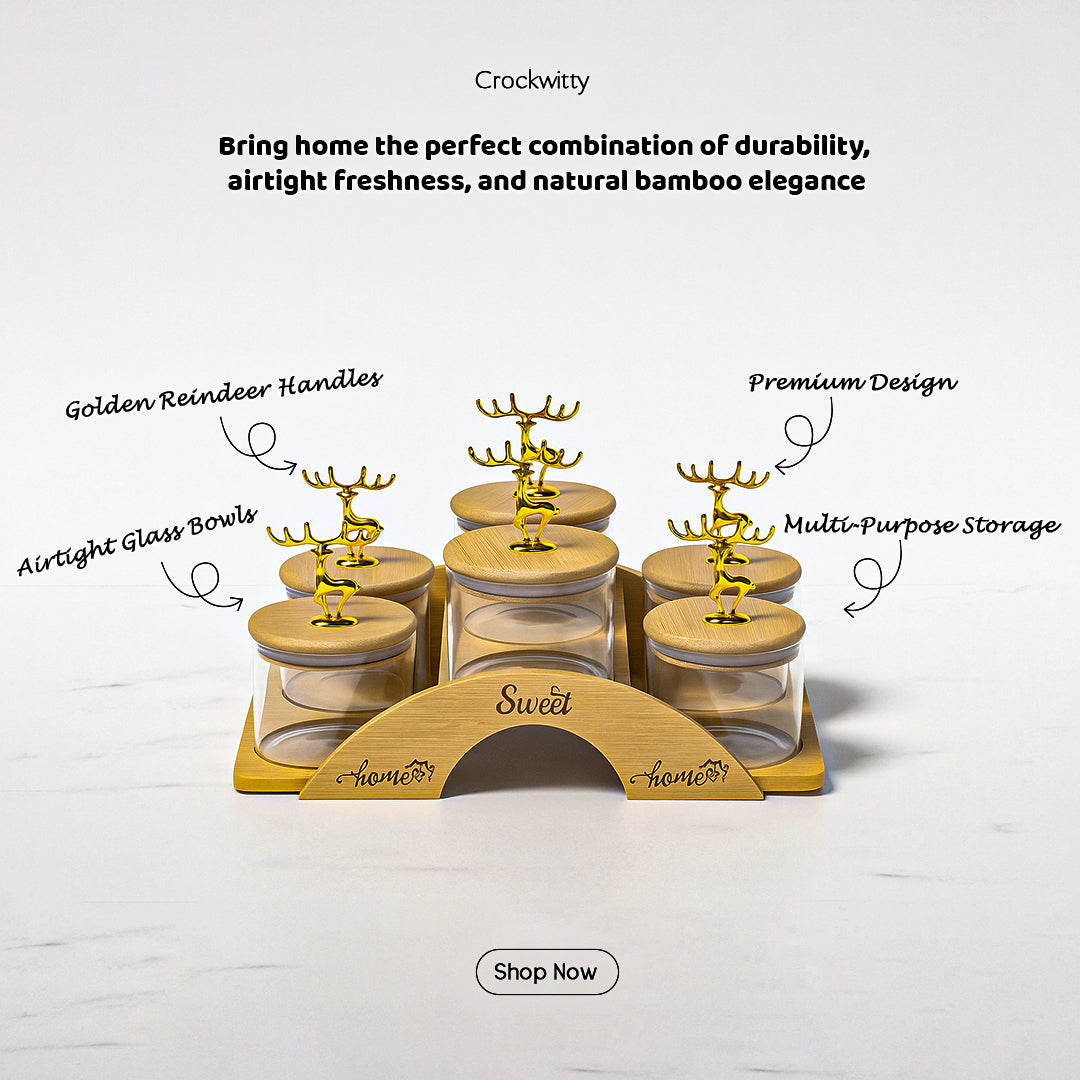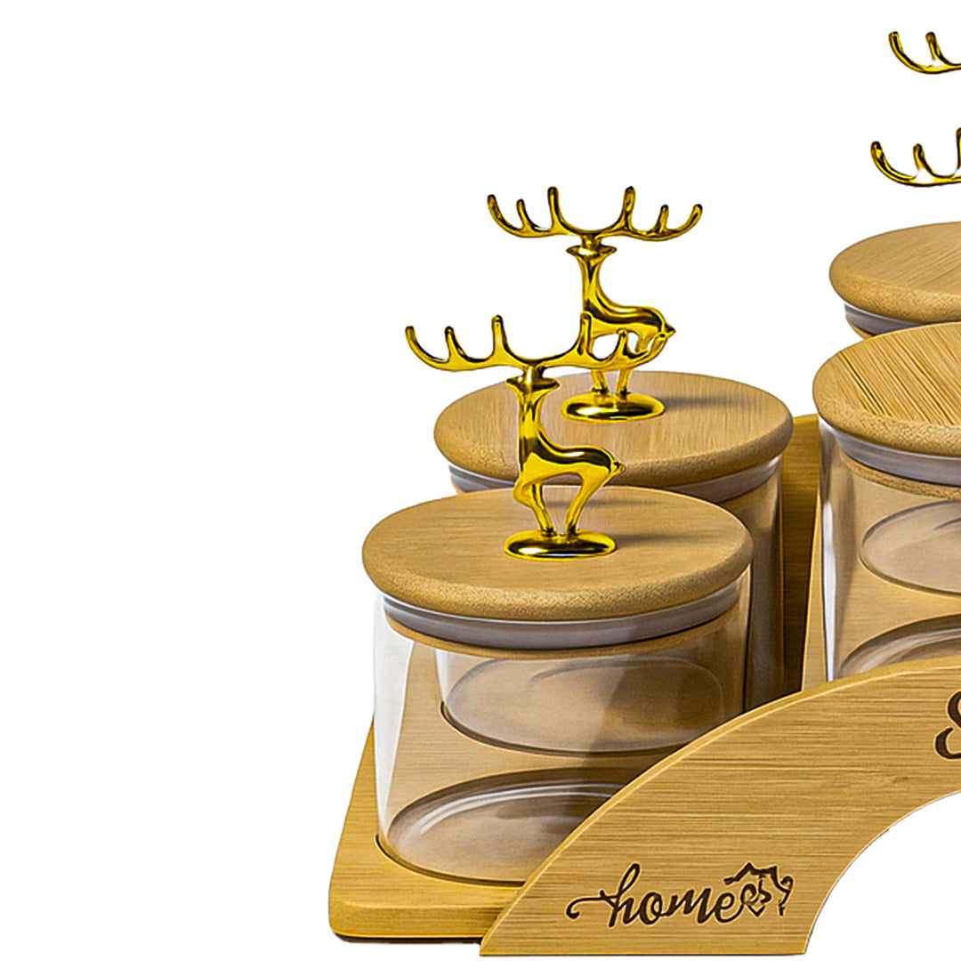 Crafted with high-quality transparent glass bowls, each container ensures long-lasting durability and clear visibility of contents, while the airtight bamboo lids help preserve freshness, aroma and taste. The standout golden reindeer handle design adds a refined decorative touch, making this set ideal for both daily use and festive hosting.